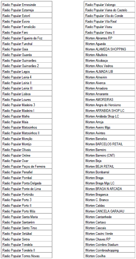 Listagem de Pontos de Venda Aderentes